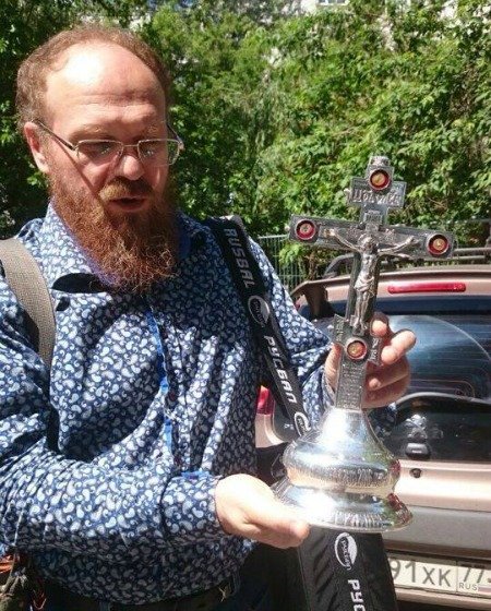 Он сообщил, что внутрь заложены частицы более 60 святых мощей, в том числе частицы Тернового венца, Древа Креста Господня, одежды Пресвятой Богородицы, Марии Египетеской, Андрея Критского и так далее, полный список указан на задней части изделия.