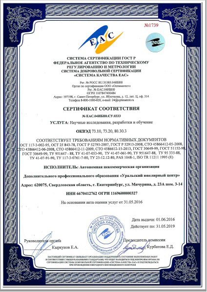 Выполнение научных исследований ювелирных материалов осуществляется с обязательным соблюдением Федеральных Законов, Постановлений Правительства РФ, отраслевых и государственных стандартов и технических условий. Специалисты лаборатории работают только с актуализированными на момент проведения исследования источниками нормативной и ценовой документации.