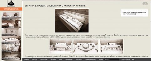 Представлены предметы ювелирного искусства, оружие и воинское снаряжение, денежные слитки, золотые и серебряные монеты. Кроме того, посетители ресурса могут совершить виртуальный тур по экспозиции.