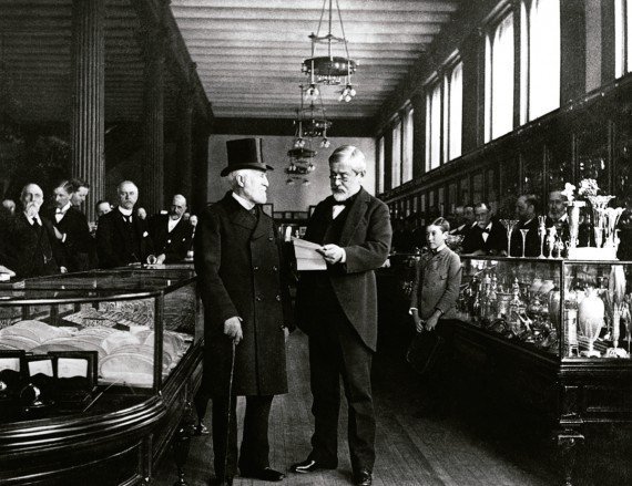 Как о ювелирной компании о Tiffany&Young заговорили в 1851 году – именно тогда ее серебряные изделия получают мировое признание. Но поистине звездный час фирмы наступил через 10 лет: во время инаугурации супруга президента США Авраама Линкольна надевает жемчужный гарнитур от Tiffany. А еще через несколько лет на международной ювелирной выставке в Париже Tiffany&Co становится первой американской фирмой, получившей награду за свои изделия из серебра. Когда Tiffany&Young превратилась в Tiffany&Co., владелец решил создать для своего детища символ нового отсчета времени. Круглый циферблат часов с большими римскими цифрами, лежащий на плечах героя древнегреческих мифов Атласа, с тех пор неизменно помещается над центральным входом в любой магазин фирмы. К началу XX века была широко известна еще одна неизменная деталь Tiffany&Co.: фирменная упаковочная коробка особого оттенка – очень красивого голубого, почти бирюзового цвета.