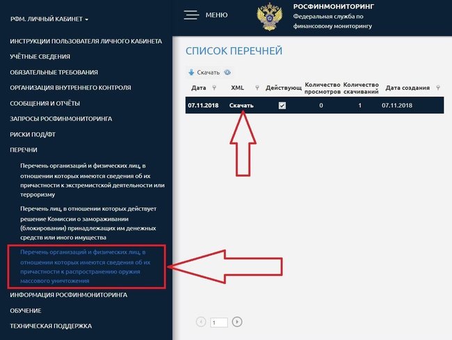 1. Зайти в личный кабинет на сайте Росфинмониторинга и скачать этот перечень. Он размещен в формате XML. Этот формат можно открыть в Exel, в Word, в блокноте Windows т.д.