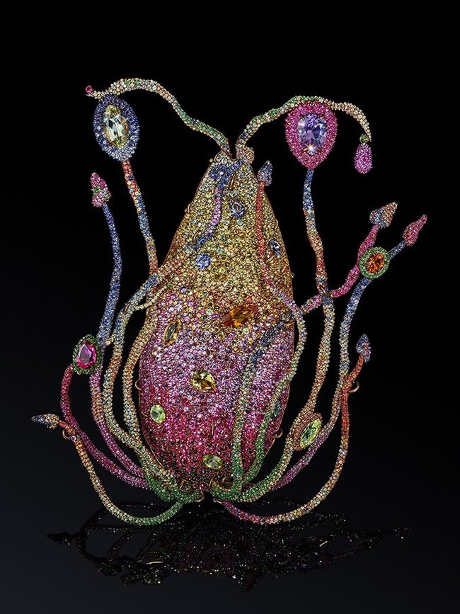 Гран-при «Русской бриллиантовой линии-2018» получила коллекция «Микрокосм» Дмитрия Бельмана - за инновации в технологии грануляции. По словам ювелира, это достижение стало результатом 20-летнего труда: «Все это время я изучал произведения греко-микенской культуры, этрусков - для меня это прежде всего завораживающий эстетический образ и глубокая философия, микрокосм. Однако моя цель заключалась не в том, чтобы воссоздать утраченную ювелирную технологию, а в том, чтобы придать ей новое современное звучание, скульптурность и объем. Принципиальным отличием моей техники грануляции от исторической является создание в украшении объемных микроформ - своеобразных микроскульптур, в которых каждый шарик-гранула диаметром от 0,15 до 0,30 мм имеет идеально круглую форму, безукоризненную полировку и при этом индивидуальную закрепку. Такое «персональное» крепление каждого шарика позволяет создавать кристально чистые, воздушные и ажурные формы, геометрические и фантазийные, словно парящие в пространстве. В каждой микроскульптуре от 73 до 95 гранул, всего же 120 микроскульптур содержат 7 600 гранул. Дальнейшим развитием моего авторского метода стало использование в этих микроскульптурах драгоценных камней».