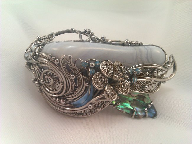 Ирина Грааль — одна из немногих художниц, занимающихся сканью — кружевной техникой, в которой тончайшая металлическая проволока сплетается в ажурный орнамент. Удивительным образом художник сочетает традиции русской скани с причудливыми мотивами итальянского барокко и изяществом французского рококо. Участница престижных ювелирных выставок различного уровня явит на суд гостей выставки свои работы, часть из которых специально сделаны для выставки.