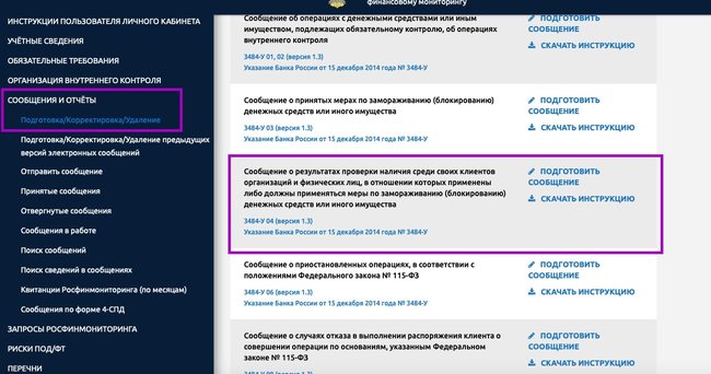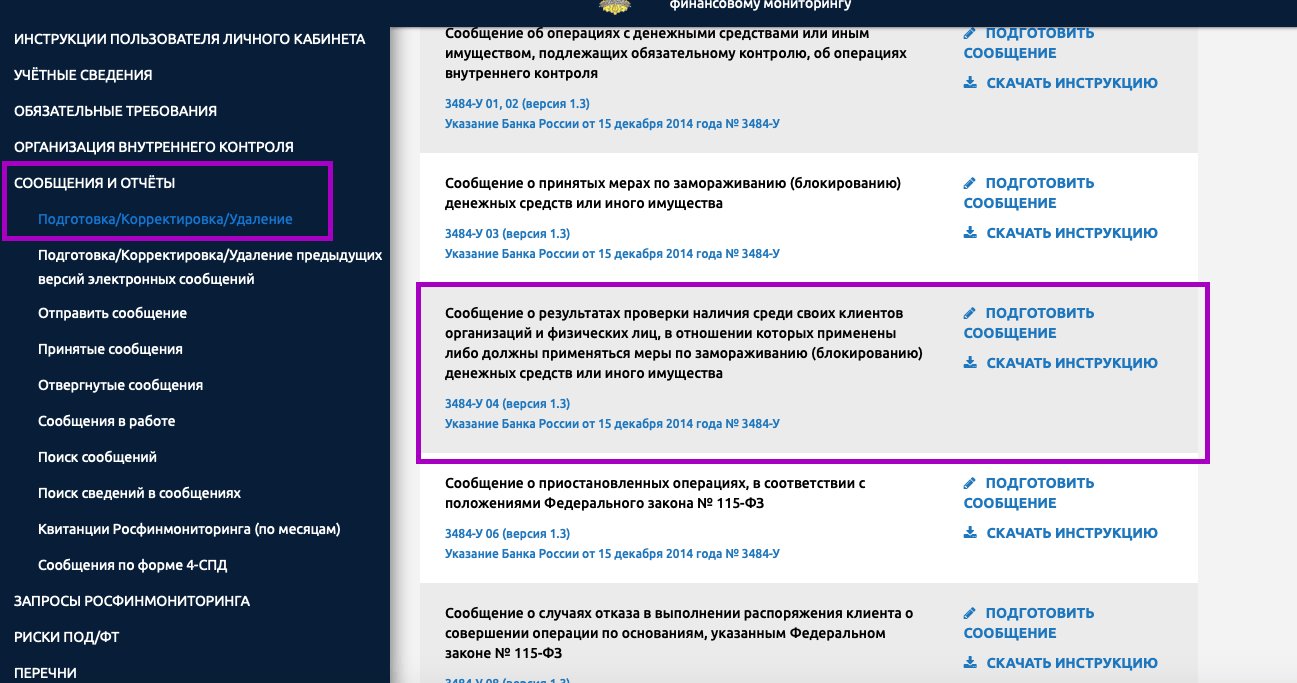 Росфинмониторинг так же указывает в ответе, что порядок представления информации о результатах проведенных проверках клиентов по Перечню лиц, причастных к ФРОМУ в уполномоченный орган, устанавливается Банком России по согласованию с Росфинмониторингом. До появления специального отчета, Росфинмониторинг считает возможным использовать имеющуюся форму, согласно Указанию Банка России №3484-У, и именно форму «о результатах проверки наличия среди своих клиентов организаций и физических лиц, в отношении которых применены либо должны применяться меры по замораживанию (блокированию) денежных средств или иного имущества.