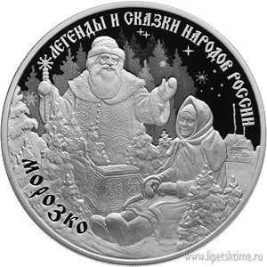 28 сентября Банк России выпустил в обращение памятную серебряную монету «Морозко». Денежный знак имеет номинал 3 рубля. Его тираж составил 7 тысяч штук.